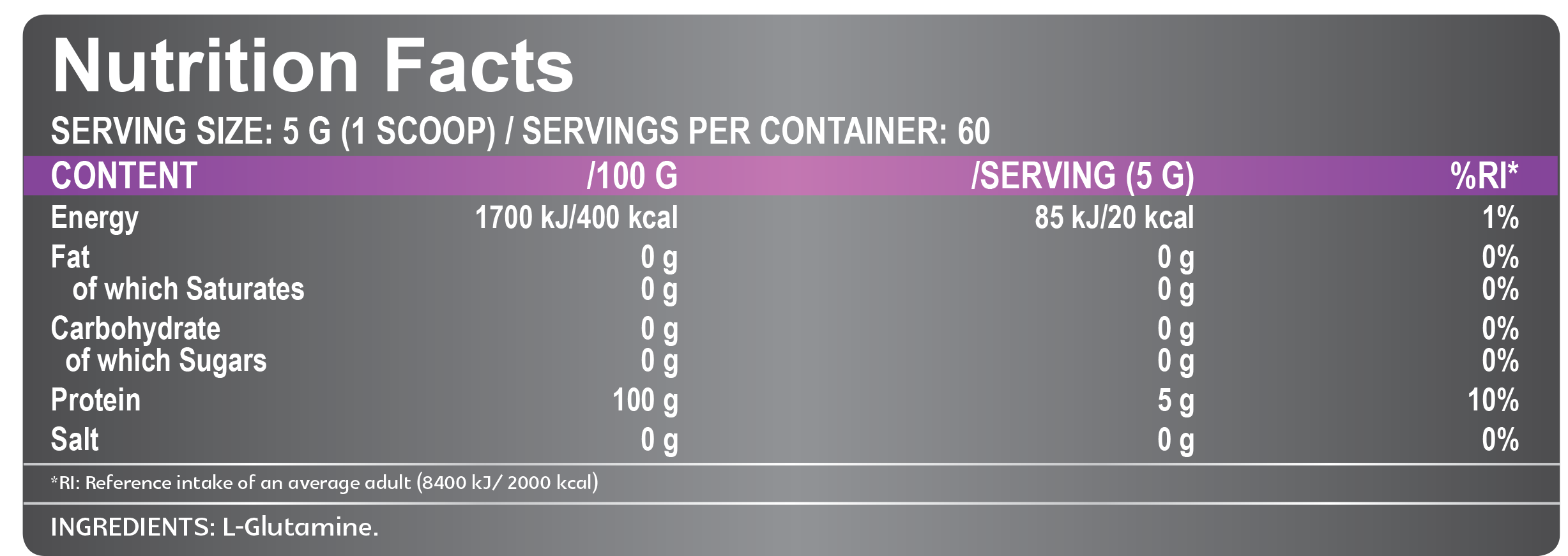 Cada dosis diaria de nuestra fórmula proporciona de forma precisa 5 g de glutamina.