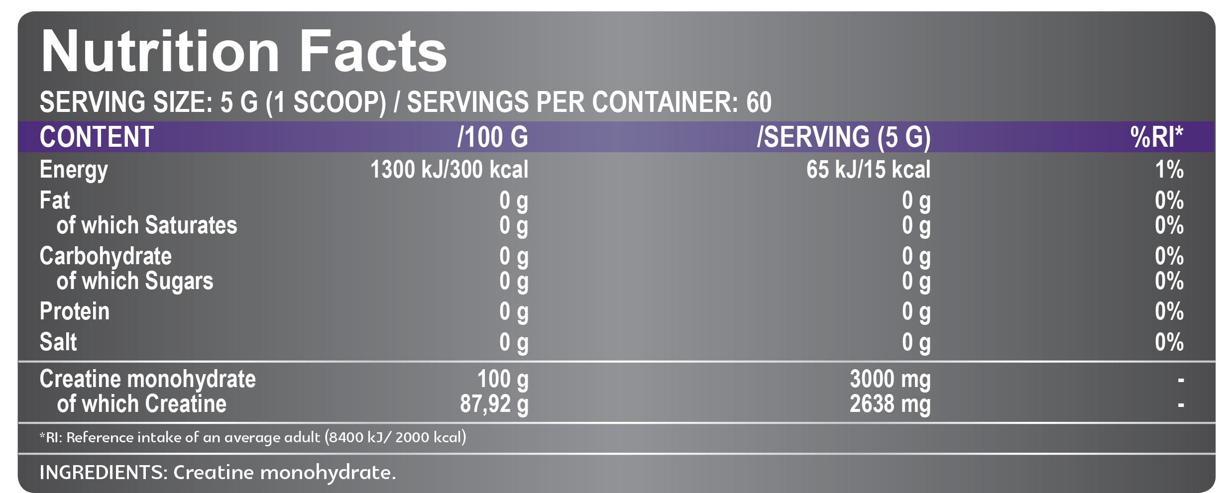 Se ha demostrado científicamente que la creatina en una dosis mínima de 3 g al día aumenta el rendimiento en el estallido sucesivo de ejercicios de alta intensidad a corto plazo, como el entrenamiento con pesas y el ejercicio cardiovascular.