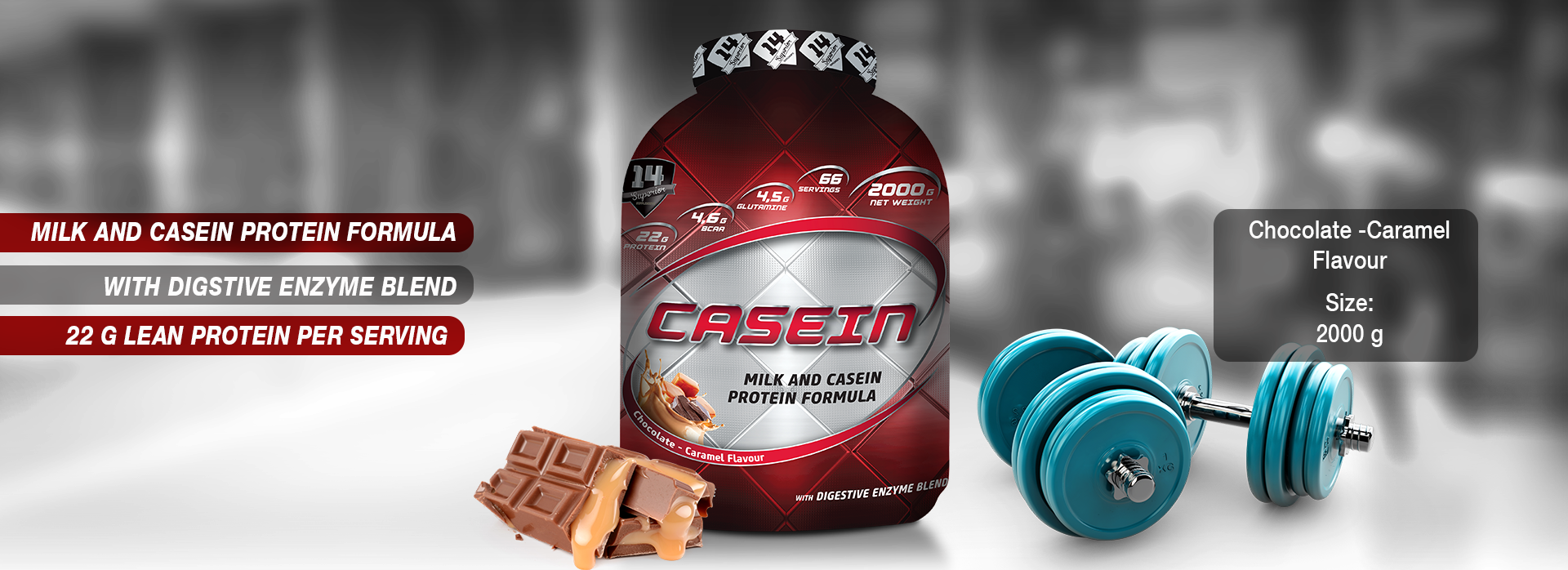 Casein es una mezcla de proteínas de la leche exclusivamente a partir de proteínas de la leche. Casein contiene una gran concentración de aminoácidos esenciales de cadena ramificada (BCAA) y muchísimo más alta (más alta que el suero) en la L-glutamina, el aminoácido libre más abundante en la sangre humana.